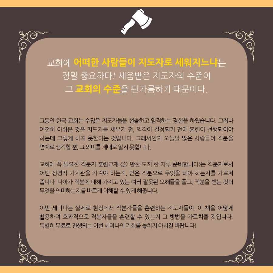 직분자 훈련 지도자 세미나 (무료) : 9/23