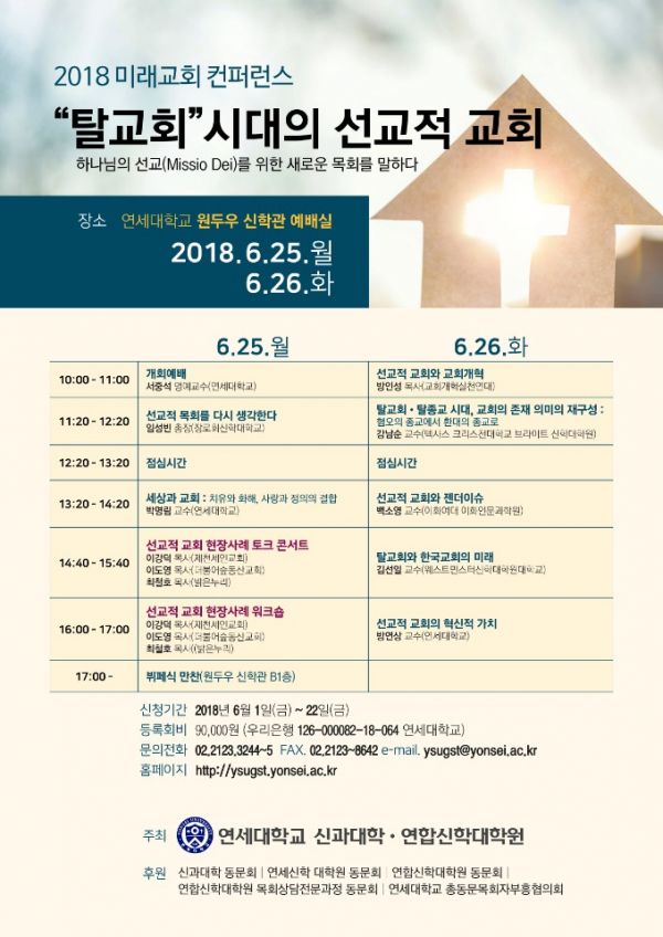 연세대학교 신과대학과 연합신학대학원 주최로 매년 여름마다 열리는 '미래교회 컨퍼런스'는 지난 37년 동안 한국교회의 이슈를 선정하여 국내외 최신의 신학적 연구와 학문적 경험을 현장 목회자와 함께 나누는 자리로 진행되어 왔다.