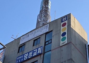 : 교회 건물과  주변이 주택가  아닌 곳.