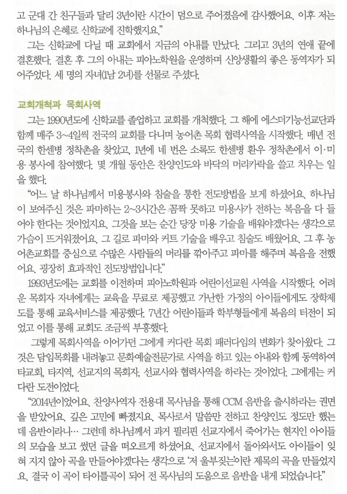 복음이 필요한 모든 곳에 예수님을 주인으로 모시고 오직 주님의 편안한 도구가 되어 하나님께서 값없이 불러주신 은혜에 감사하며 문화협력자의 사명을 다하기 위해 자신의 가진 것을 드려 기도하며 최선을 다하고 있습니다.