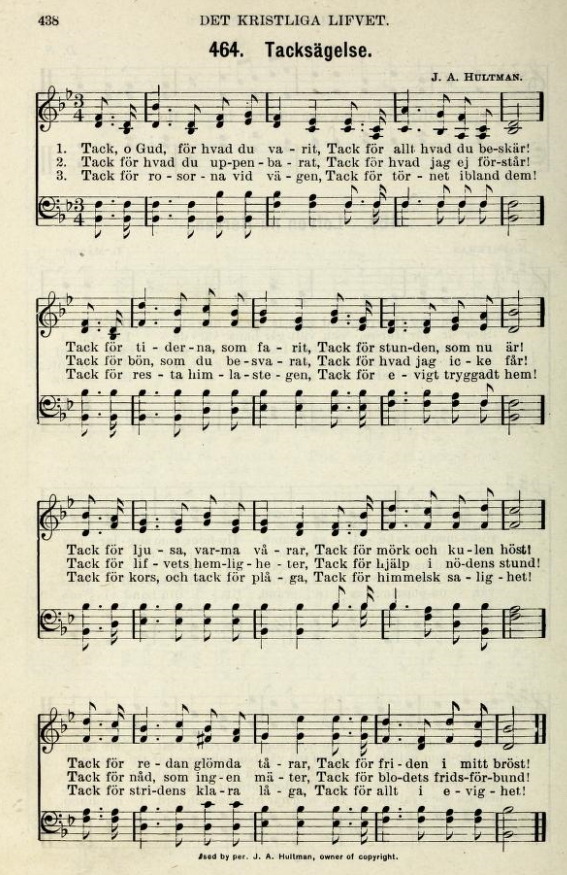 스웨덴어, 번역악보 - 감사찬송