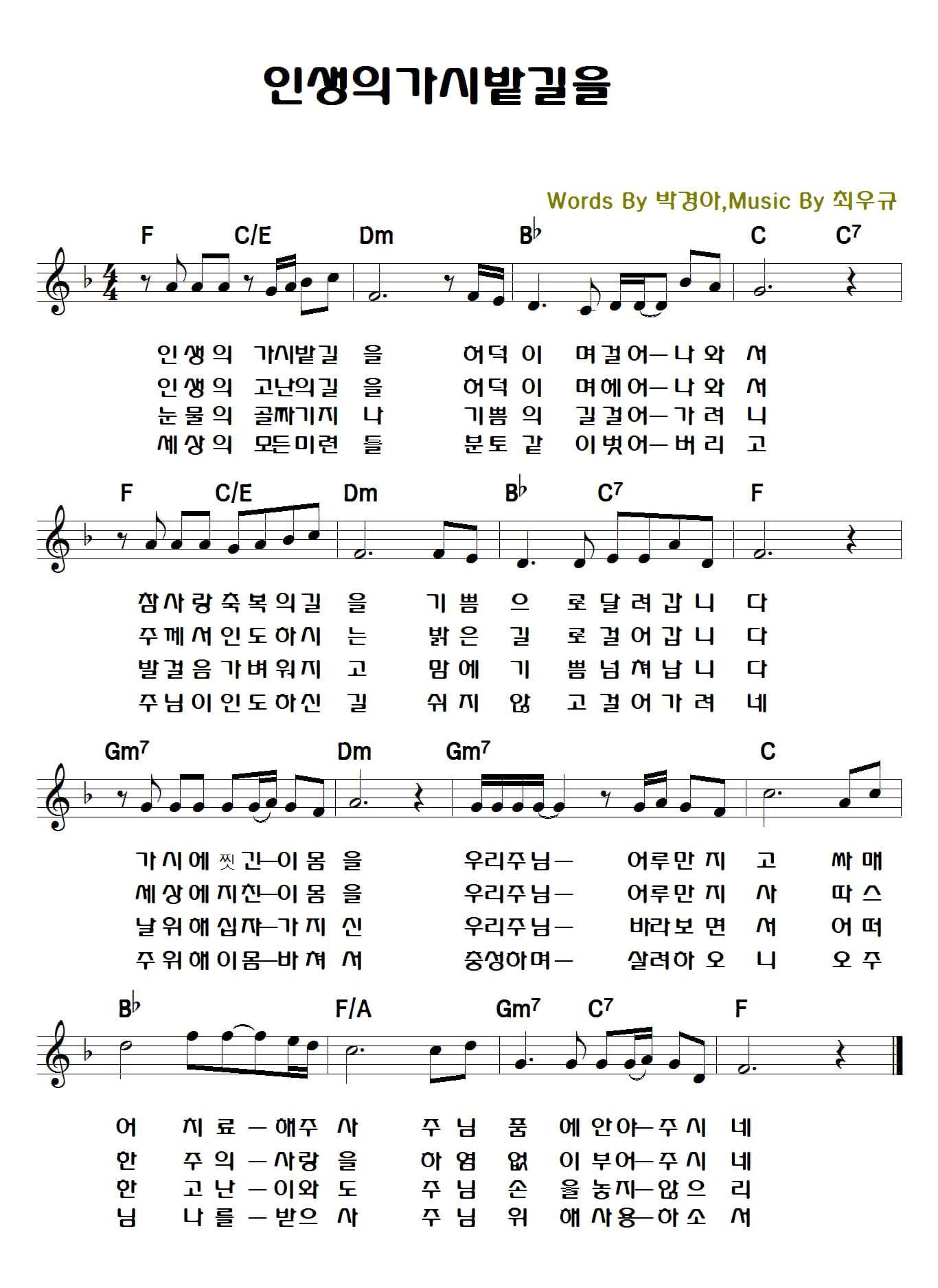 인생의 가시밭길을 (박경아 작사, 최우규 작곡)