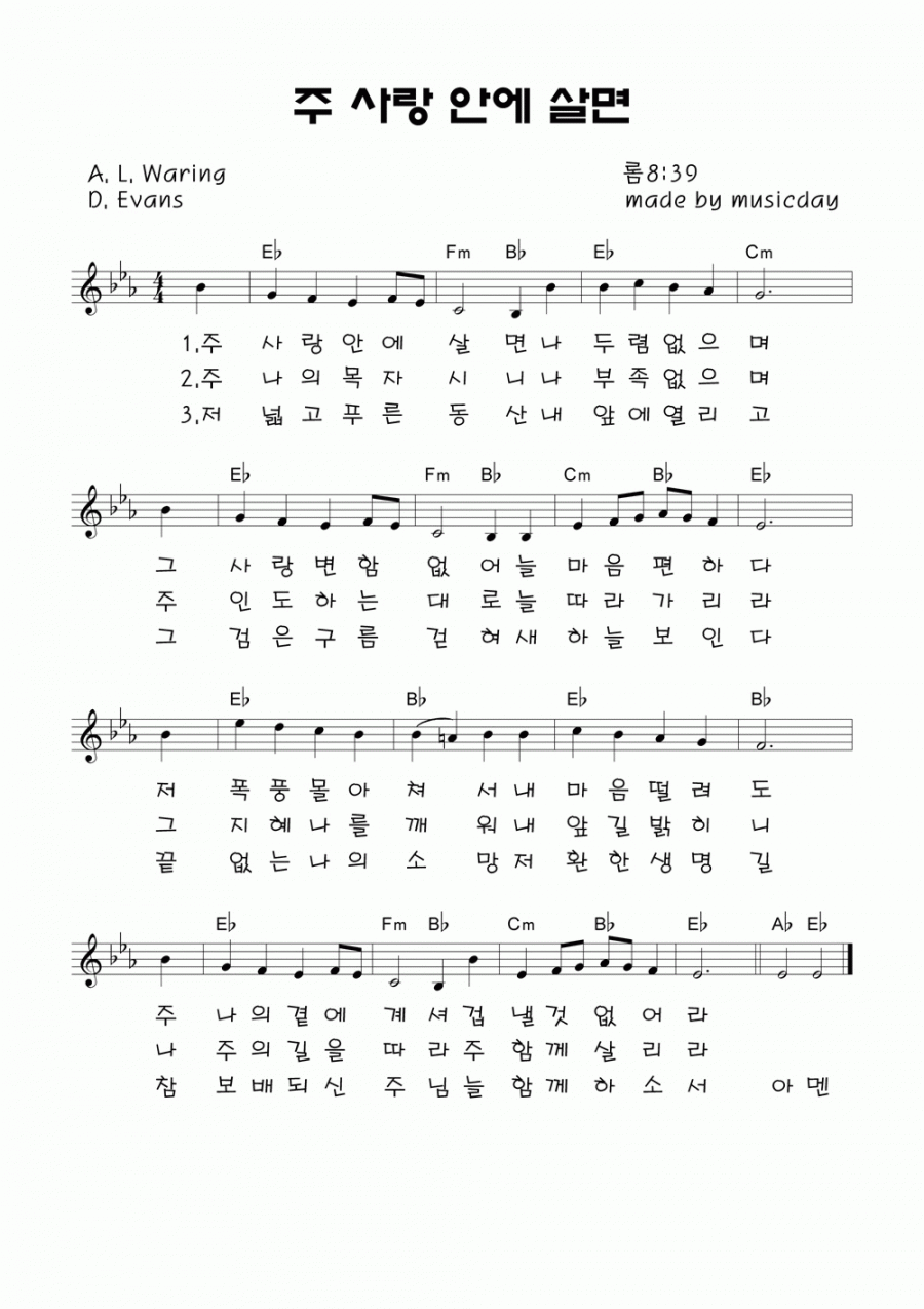 새찬송가 397장 '주 사랑 안에 살면' 가사를 이용해 신경치님이 작곡했어요.