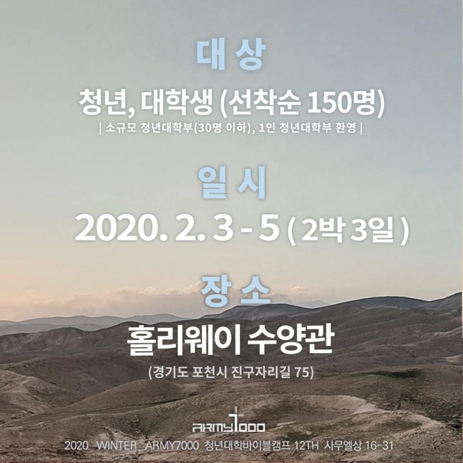 ARMY7000 청년 대학 바이블캠프 시즌12 (사무엘상 16-31) : 광야에서 (2/3-5)