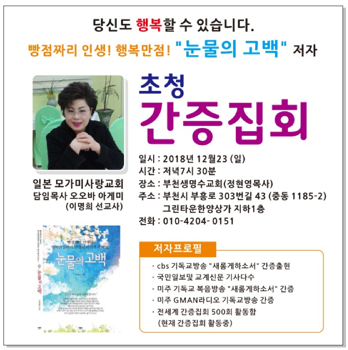 부천 생명수교회, 이명희목사 초청 간증집회 (12/23)