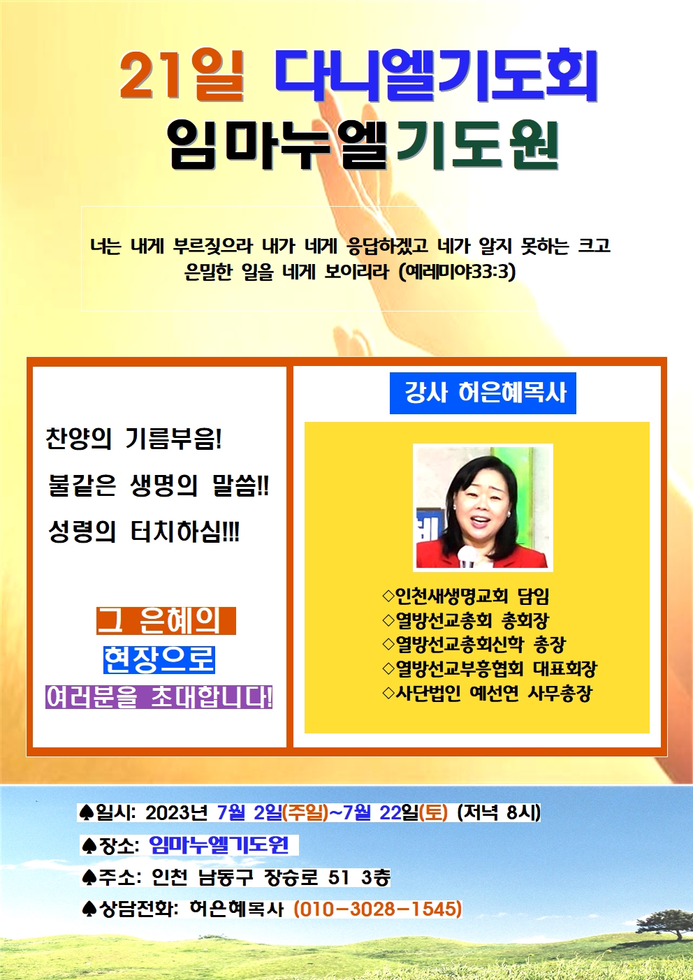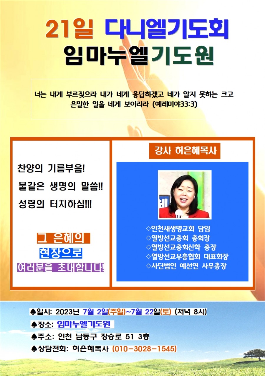 21일 다네니엘기도회(강사 허은혜목사) 인천 임마누엘기도원 23.7.2-22
