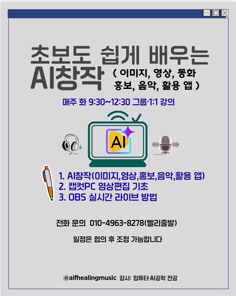 기독교인 대상 AI혁신 창작(이미지,영상,동화,음악,업무용 앱) 세미나 수강생 모집