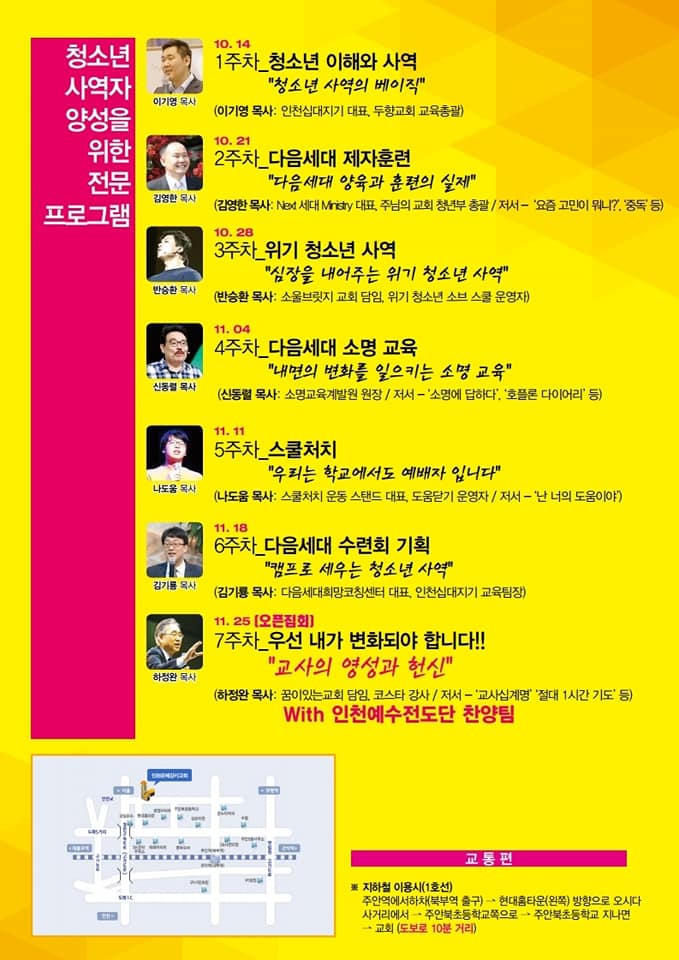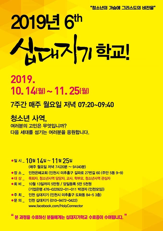 2019년 6th, 십대지기 학교 : 청소년의 가슴에 그리스도의 비전을 (10/14-11/25)