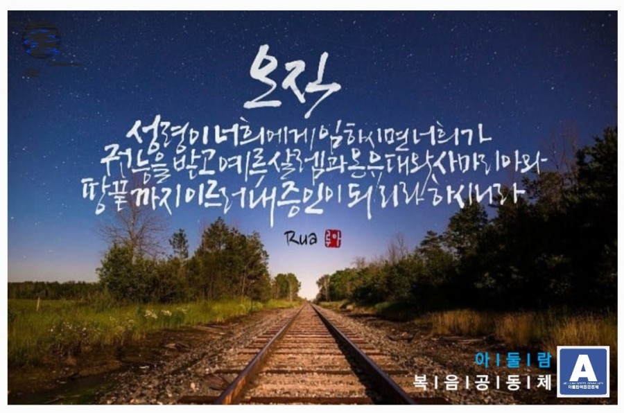 "오직 성령이 너희에게 임하시면 너희가 권능을 받고 예루살렘과 온 유대와 사마리아와 땅 끝까지 이르러 내 증인이 되리라 하시니라"(사도행전 1:8)